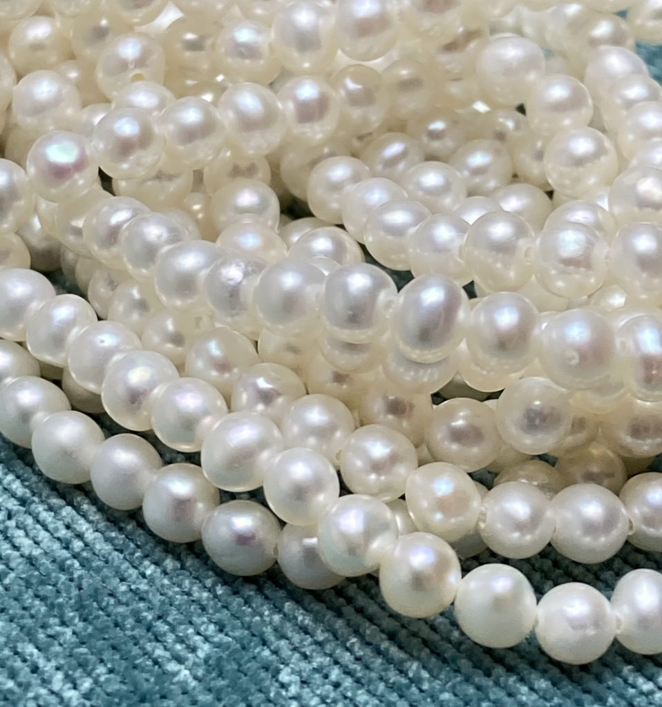4mm White Round Grade AAA Pearls. Sold by 16″ strands.