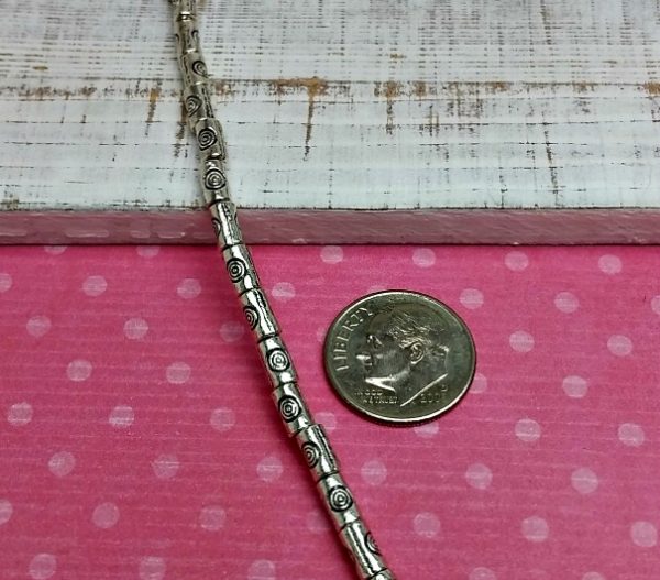 Metal Pewter Tube Beads Swirl in Center – 34 Beads