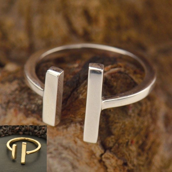 Adjustable Bar Ring – Sterling Silver & Natural Bronze