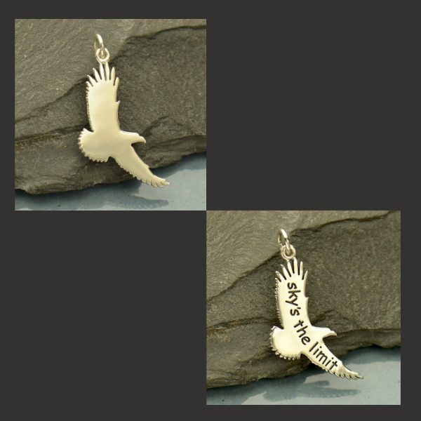 Sterling Silver Flying Eagle Charms – Graduation Charm.  Select plain sterling silver which can be used as a Stamping Blank or choose stamped with “sky’s the limit”.