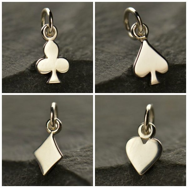 Tiny Sterling Silver Suit Charms  – Heart, Spade, Club & Diamond Charms.