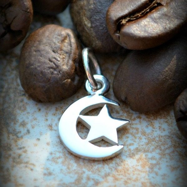 Moon and Star Charm, 1-sided, 1.3 mm Hole