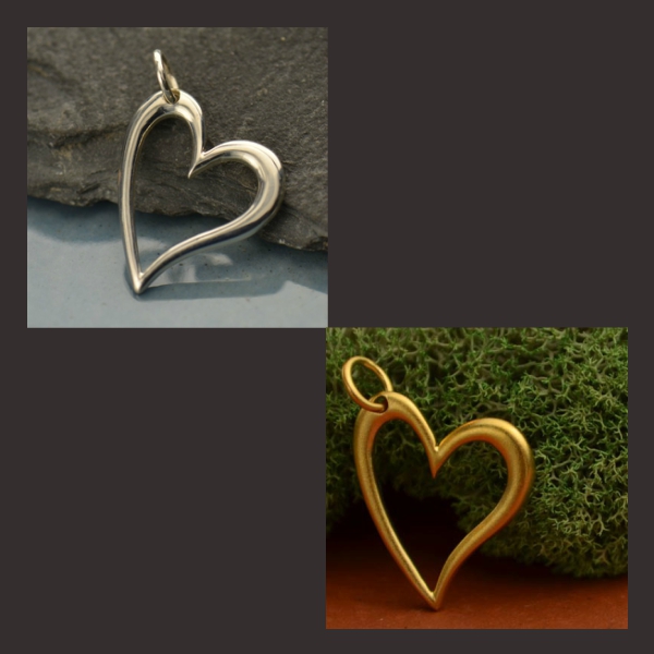 With its curvy lines and sweetheart attitude, this heart charm will surely become a favorite! For quick & easy designs, pair with our finished curb chains! We also have other styles of chains available.