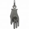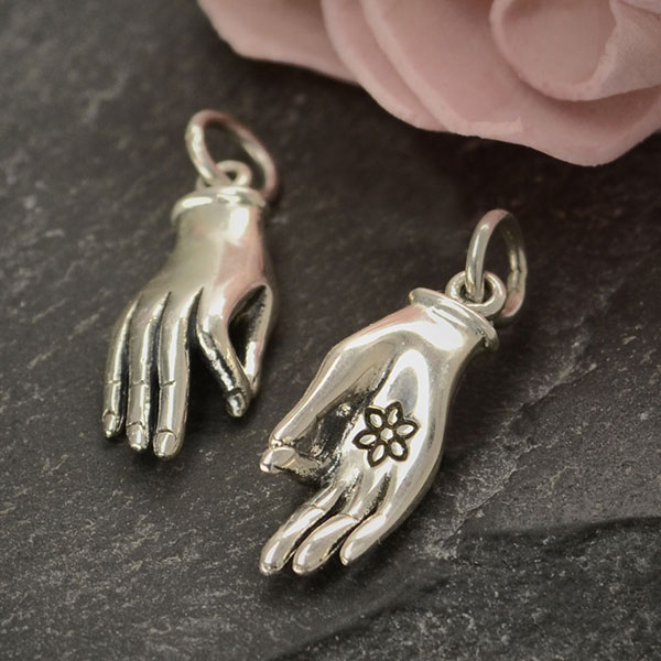 This right-handed sterling silver Gyan Mudra charm will remind you to take thing back to their root and invite calmness and meditation. Mudras are a form of self-expression used in Hindu and Buddhist teachings and are often used for healing purposes. This is a great mudra to use when seeking to gain knowledge. Try holding this mudra while meditating for insight into your life or a specific issue.