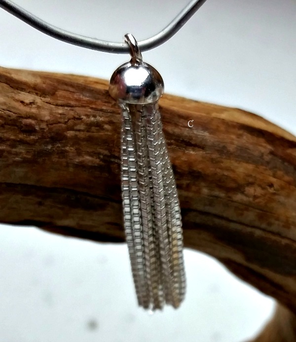 A bright Sterling Silver Tassel with Nine – .9mm Box Chains. 24mm Long. These flirty little tassels hang from a 5mm bead cap. The eye-catching movement is just what you need to professionally finish your Earring or Necklace designs.