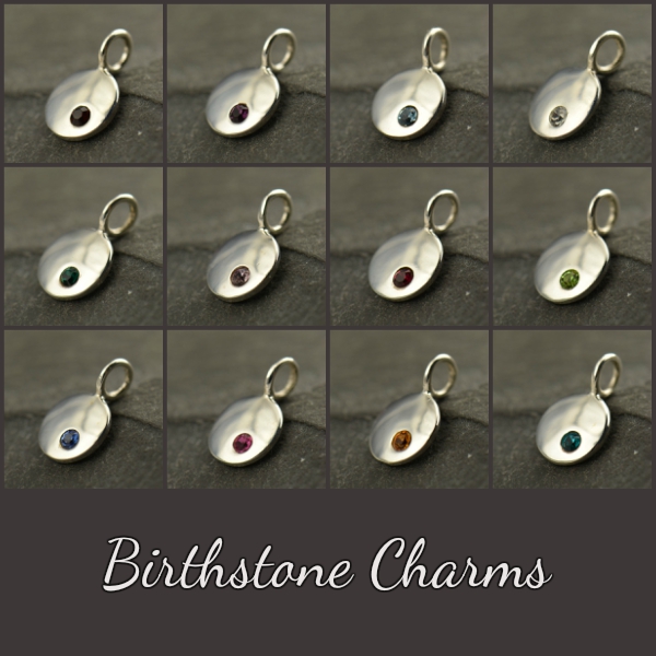 Sterling Silver Birthstone Charm. Small round charm with a colored crystal . Pair with Letter Charms to create sentimental charm clusters moms will love!