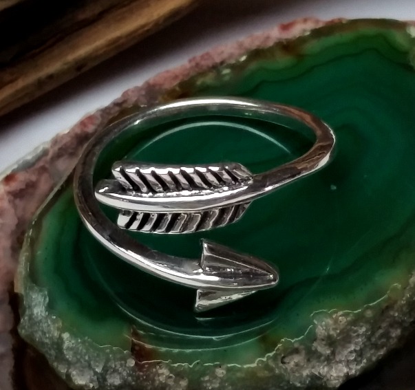 Adjustable Sterling Silver Feather and Arrow Ring.