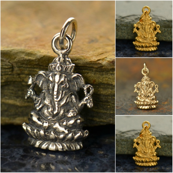Ganesh Charms. Sterling Silver & 24k Gold Plated.