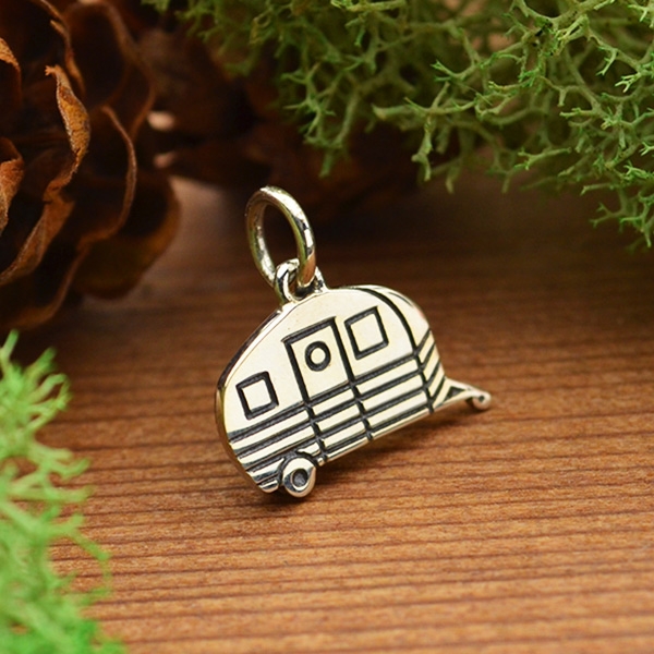 Sterling Silver Happy Camper Charm. Summer time is lots of fun for the happy camper. Are you a happy camper? If so you will adore this fun and whimsical charm. Remember your favorite road trip with this adorable camping trailer charm! Etched lines on sterling silver flat plate depicts a tear-drop trailer. Perfect for those who love the outdoors, travel, and adventure!