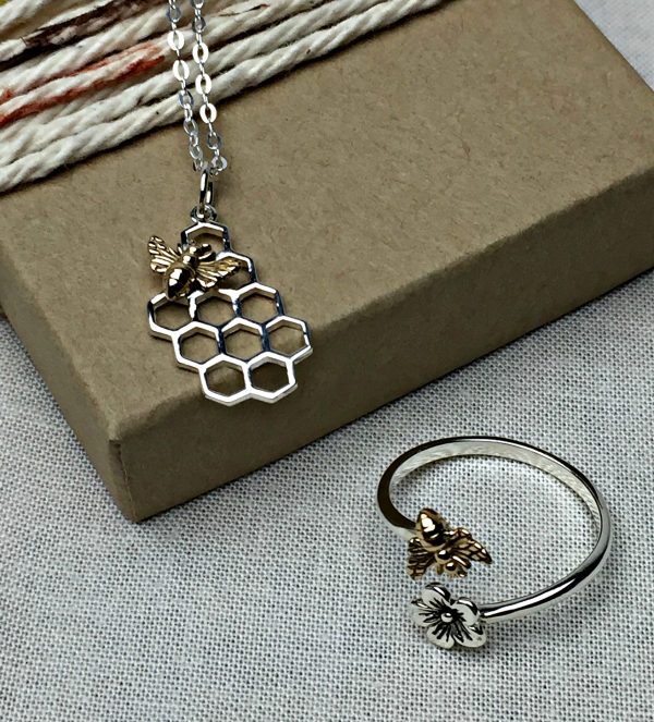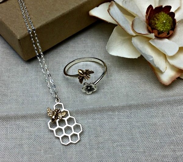Sterling Silver Honeybee Ring & Necklace Set.