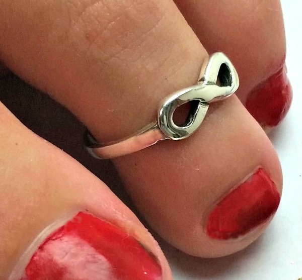 Compliment your summer tan with a sterling silver infinity toe ring.