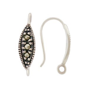 Sterling Silver Thai hook earring top with handset Swiss marcasite, single loop at the bottom.