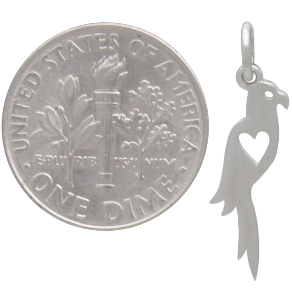 Sterling Silver Parrot Charm – Small long slender shape parrot charm with heart shape cut out.  Express your love for your favorite feathered friend! Parrots are sociable and quirky with very distinct personalities. What’s not to love about them?