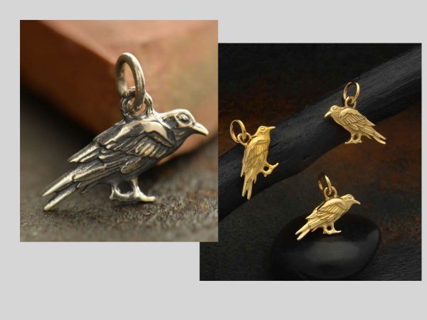 Choose from either Sterling Silver or Natural Bronze  Raven Charms.