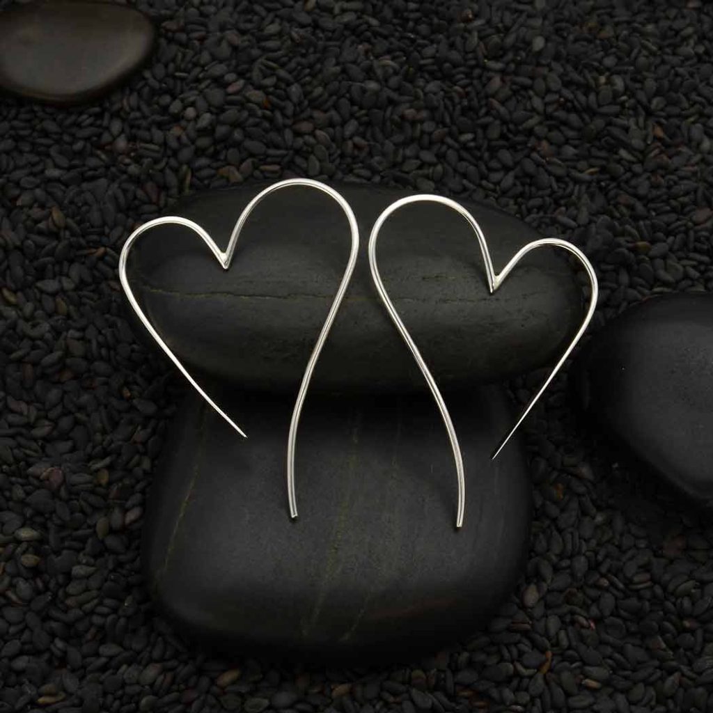 These sterling silver wire heart hoop earrings are perfect for the modern romantic. They’re light, airy, and joyous. Perfect for everyday looks.
