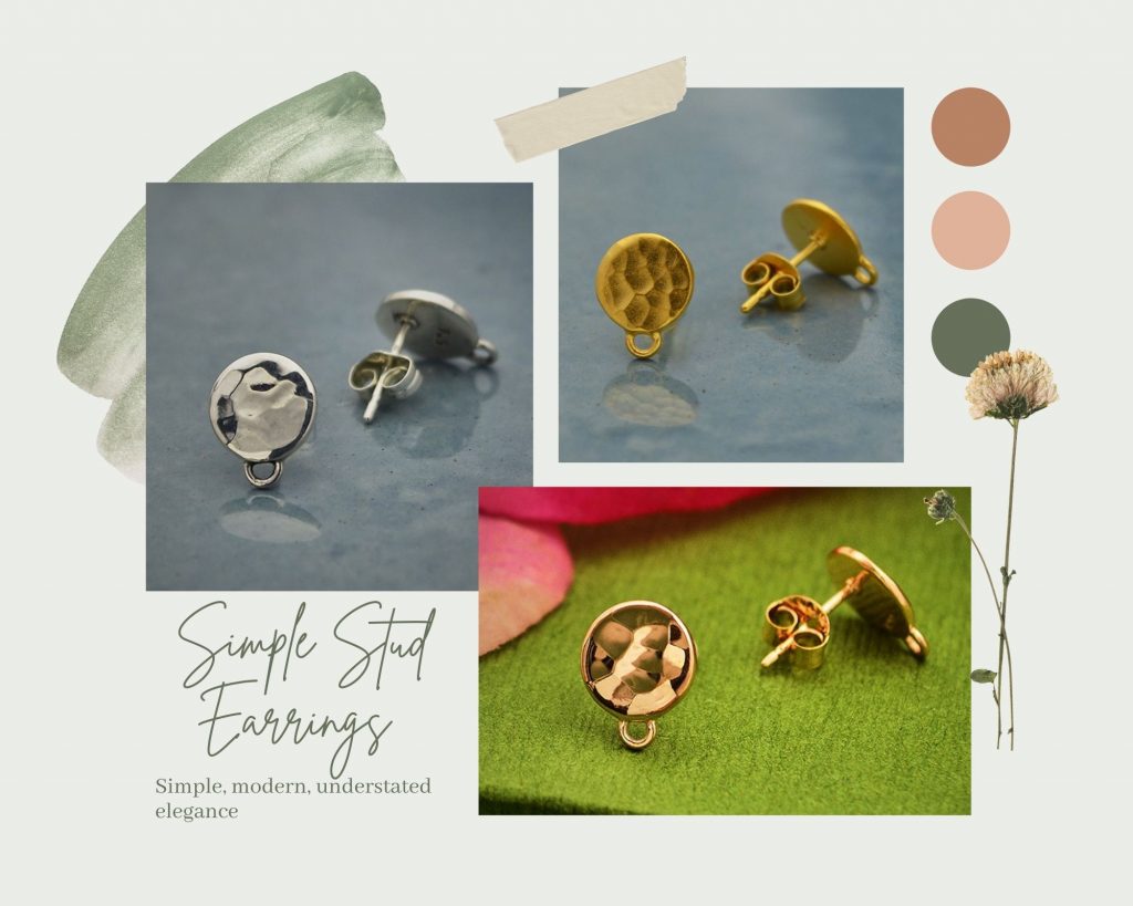 Small Round Post Earring Tops with hammered finish. Handmade. Simple, modern, understated elegance – just drop a dangle or charm on this post earring top to create a satisfying design you can wear with anything.