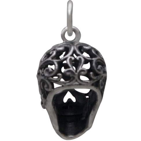 Sterling Silver Sugar Skull Charm with Filigree Scroll Work