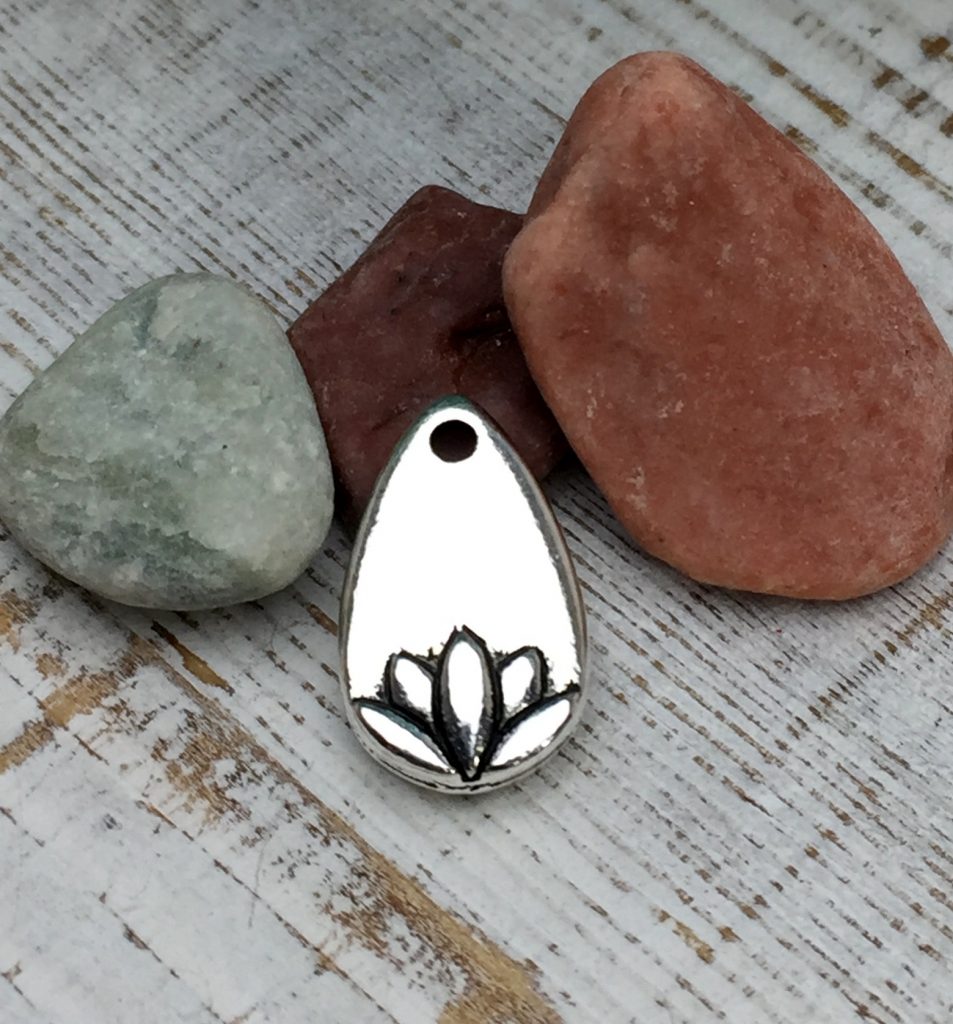 Antiqued silver plated Britannia Pewter 2-sided lotus petal charm (or pendant) from TierraCast. Part of the Happy Go Lucky collection, the lotus flower symbolizes purity, enlightenment and beauty in both Buddhism and Hinduism. Ancient Egyptians associated the lotus with rebirth and the sun.