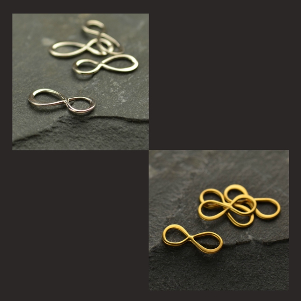 A sweet and tiny little design, this shape is classic, fluid, and romantic all at the same time. Think love, for it is infinite, boundless, and everywhere. This lightweight jewelry link is perfect for earrings, necklaces, and bracelets.