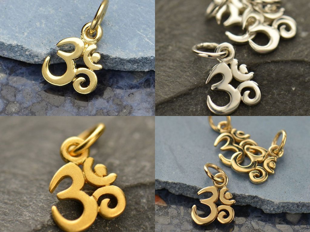 Tiny Ohm Charm. Sterling Silver, Natural Bronze, 14kt Gold Plated & 24kt Gold Plated.
