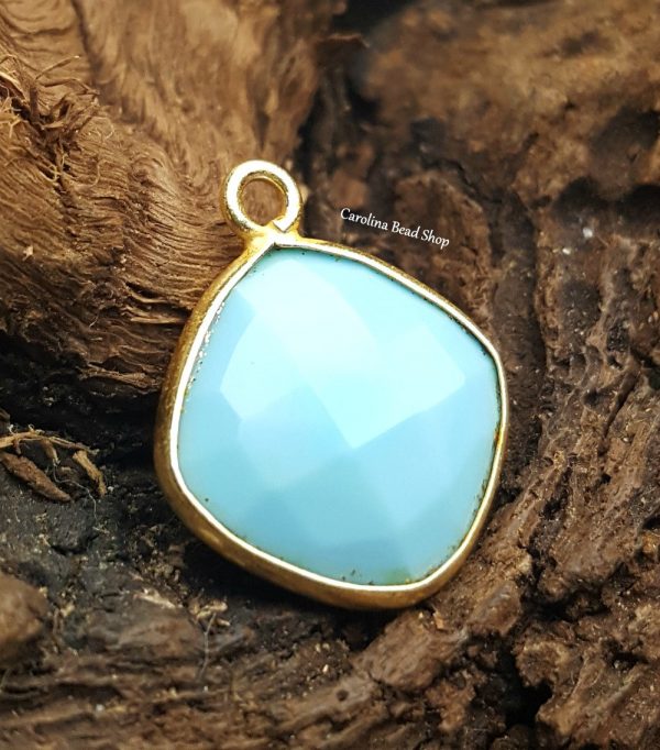 Turquoise Cushion Gemstone Vermeil Link 13mm x 13mm. Gold Plated.