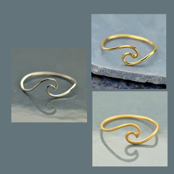 Wave Ring. Sterling Silver, Shiny Gold Plated & Gold Plated
